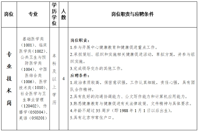 中国健康教育中心关于公开招聘