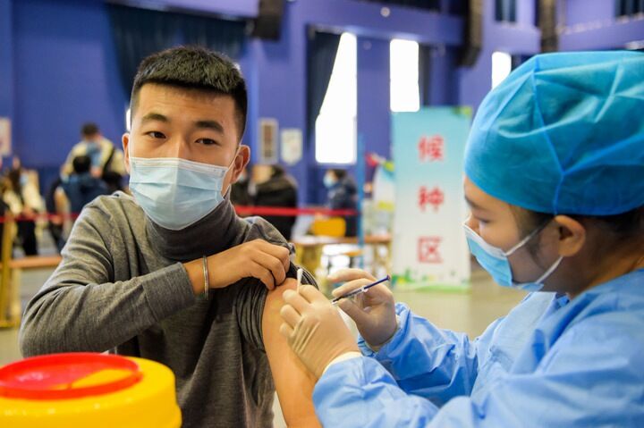 11月12日,在内蒙古自治区呼和浩特市,医务人员为市民接种新冠病毒疫苗。新华社记者李志鹏摄