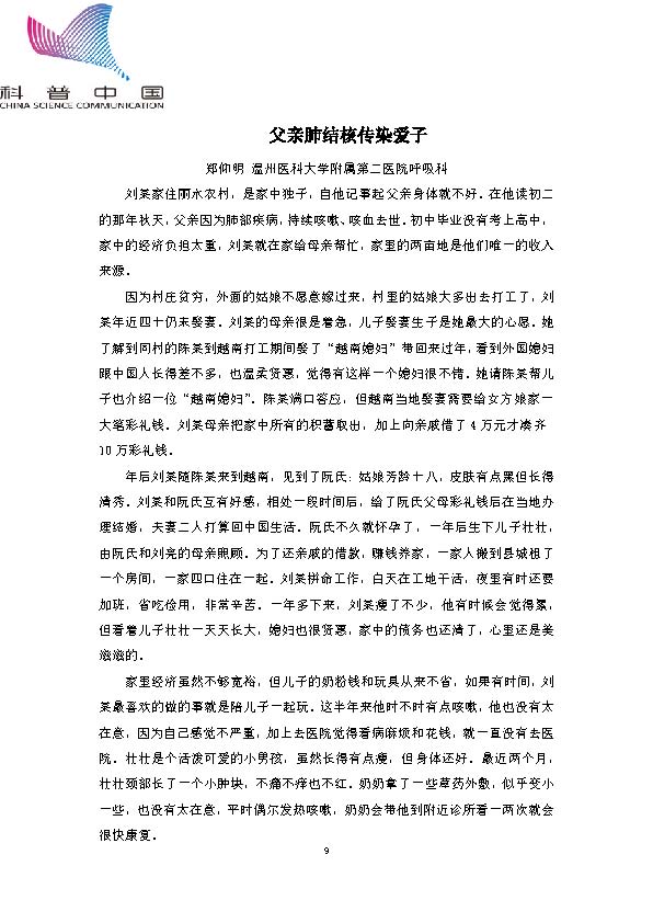 身边的结核病故事——父亲肺结核传染爱子