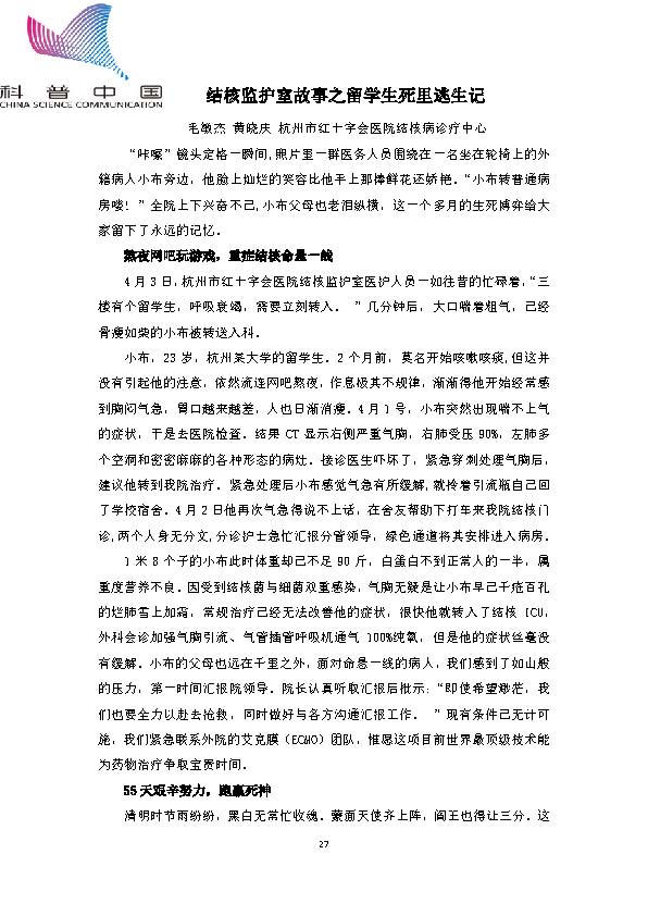 身边的结核病故事——结核监护室故事之留学生死里逃生记